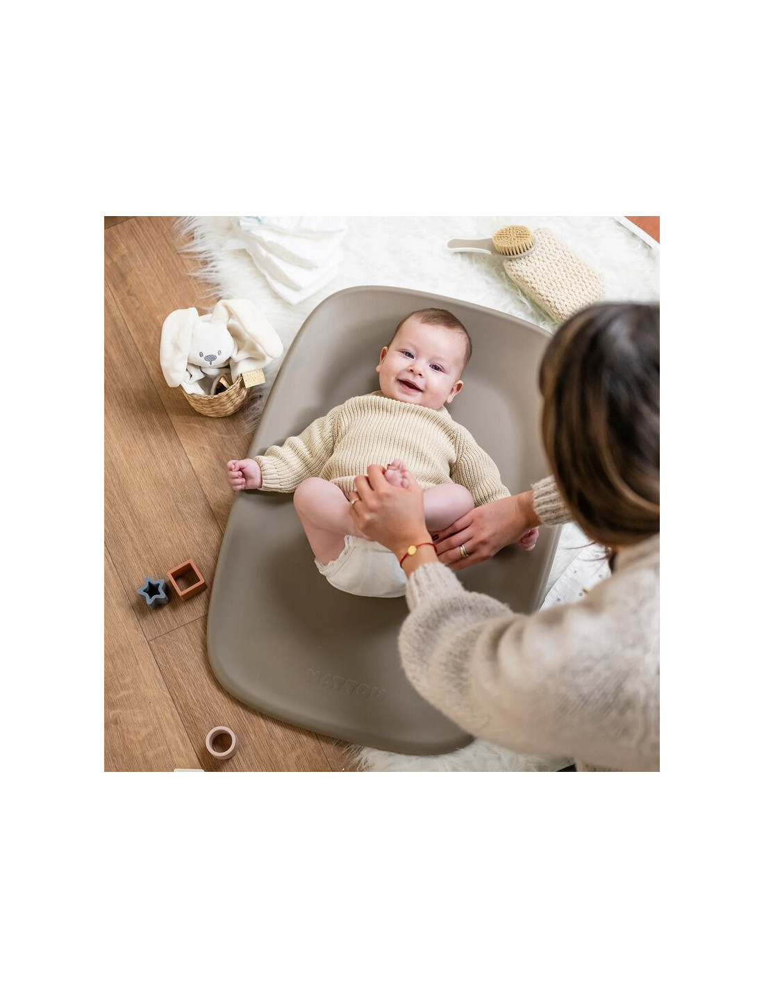 Partea inferioara este texturata tip „fagure de miere”, oferind un efect de vid. Greutatea copilului creeaza o prindere naturala pe masa de infasat, prevenind alunecarea si permitand mutarea usoara dupa utilizare.