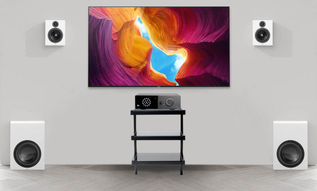 Sistem Stereo Lyngdorf cu amplif. TDAI-1120 + boxe de perete MH-2 + 2x subwoofer BW-2