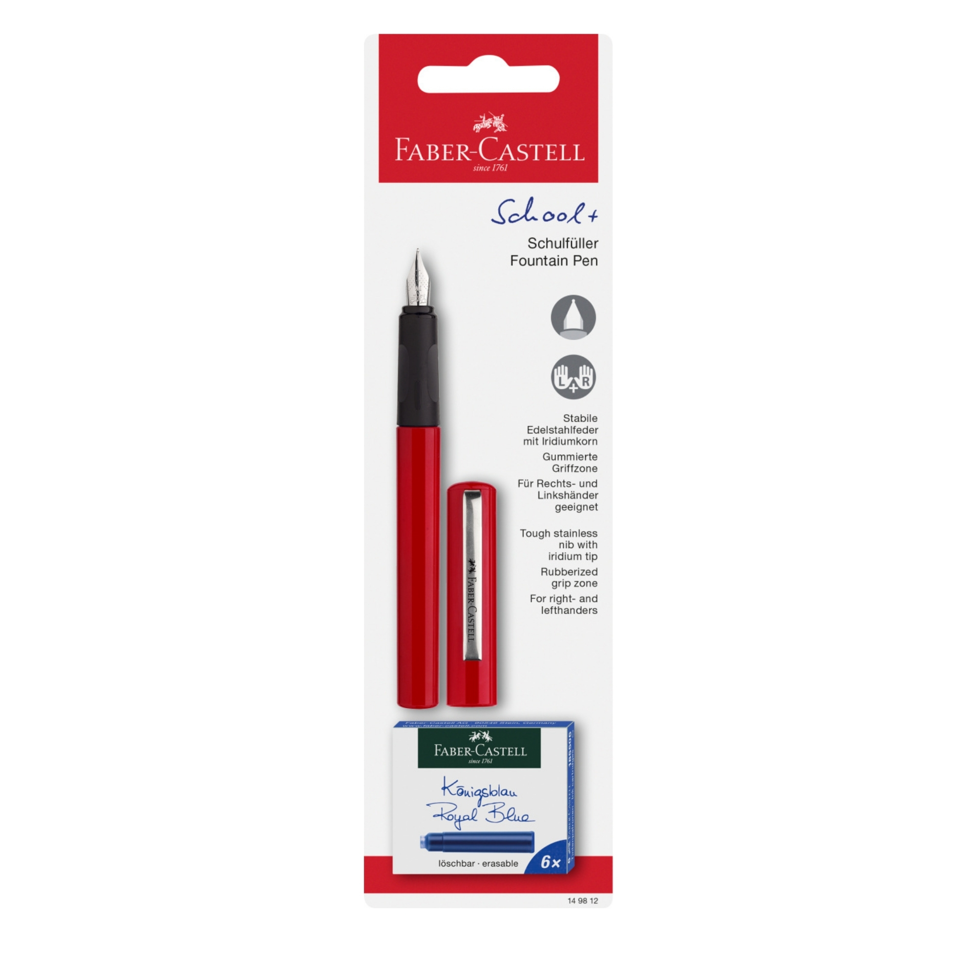 Stiloul școlar Faber-Castell, livrat în blister împreună cu 6 cartușe de cerneală, este conceput special pentru copiii aflați la început de drum în scriere. Culoarea roșie atractivă și designul prietenos îl fac ușor de îndrăgit și de recunoscut în penar.