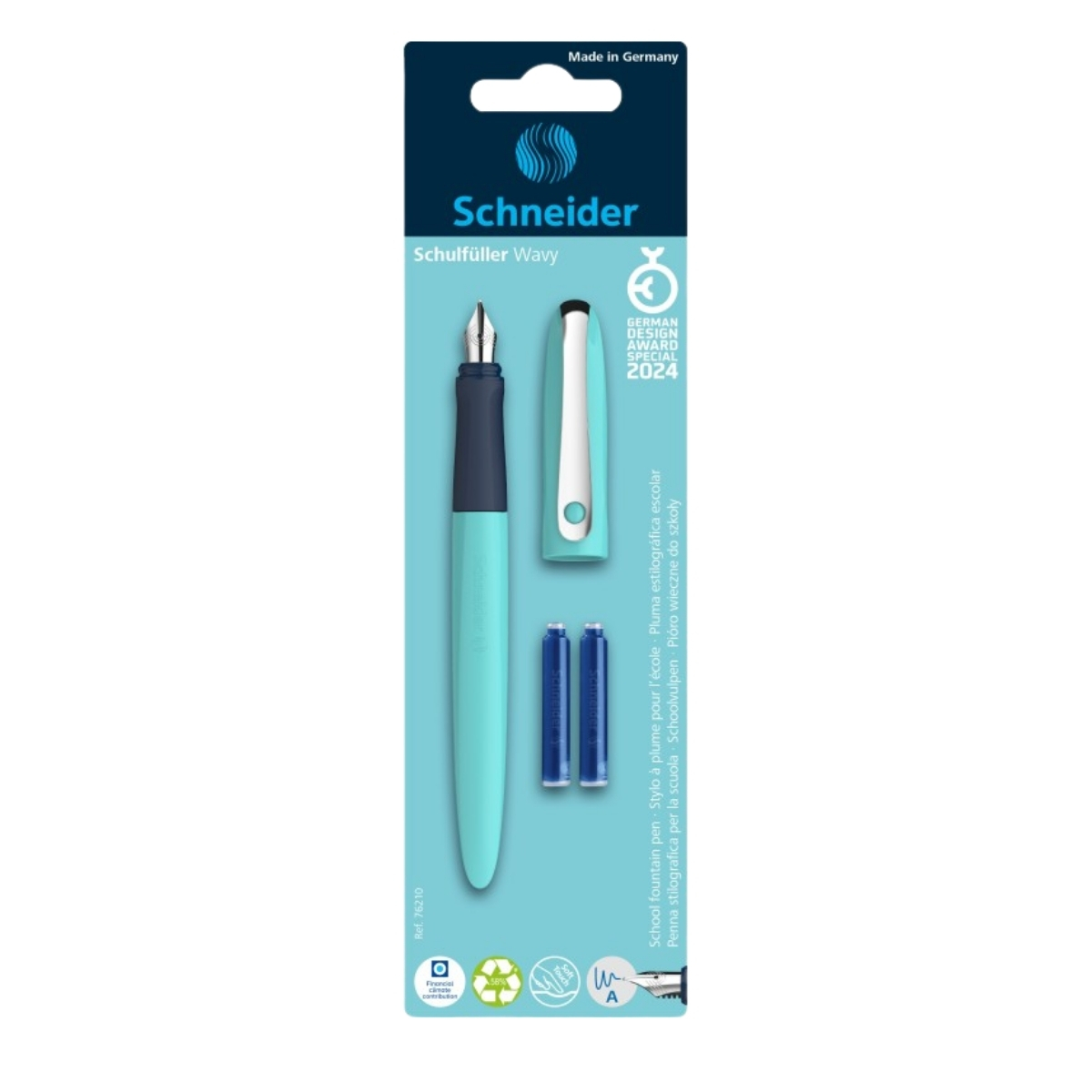Creat special pentru elevii aflați la început de drum în scrierea cu stiloul, stiloul Schneider Wavy combină funcționalitatea cu un design modern și culori pline de viață. Varianta turcoaz adaugă o notă veselă și energică penarului, încurajând scrierea corectă și fluentă încă de la primele exerciții.