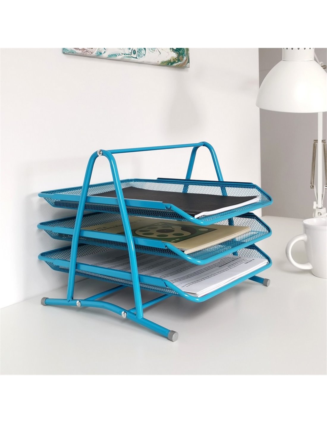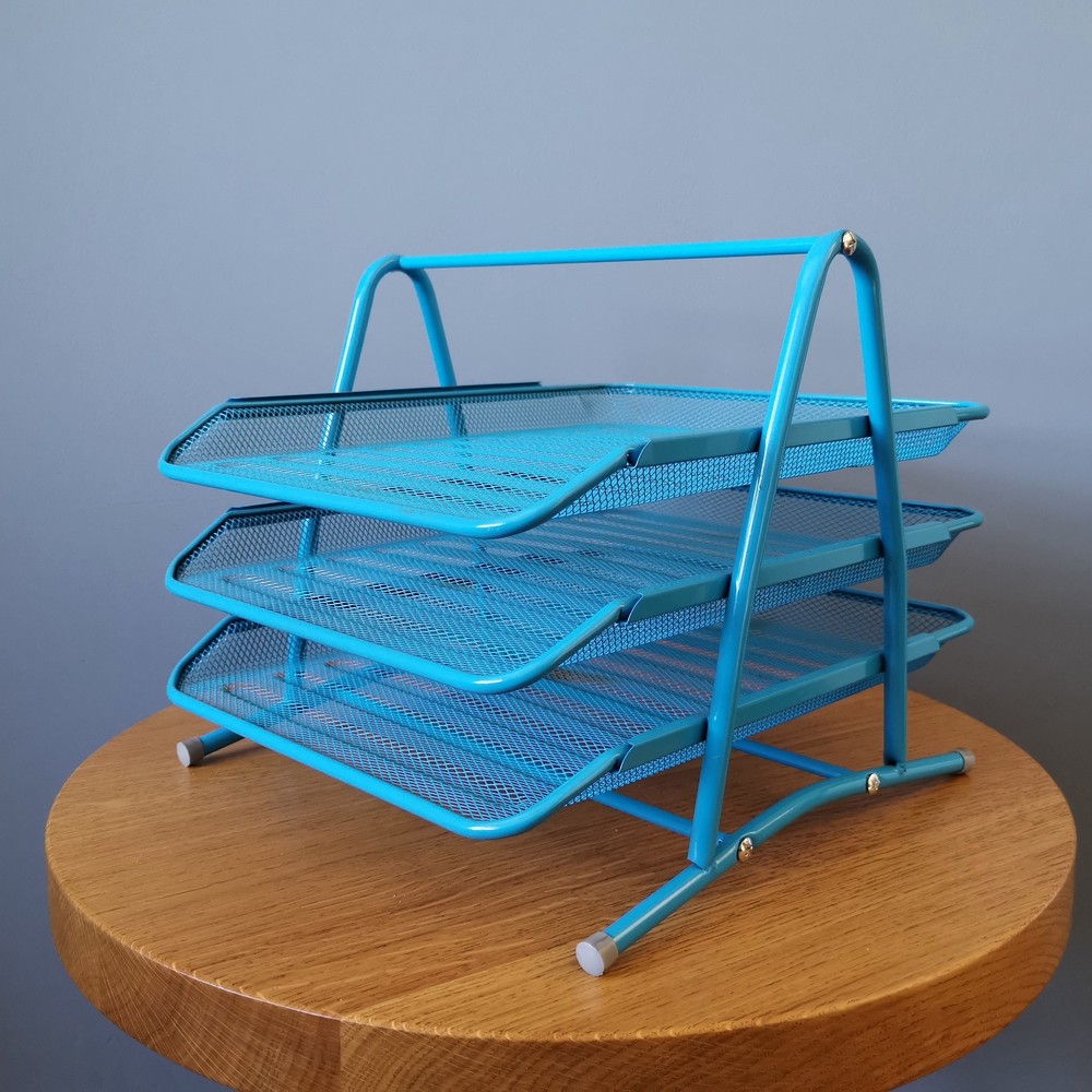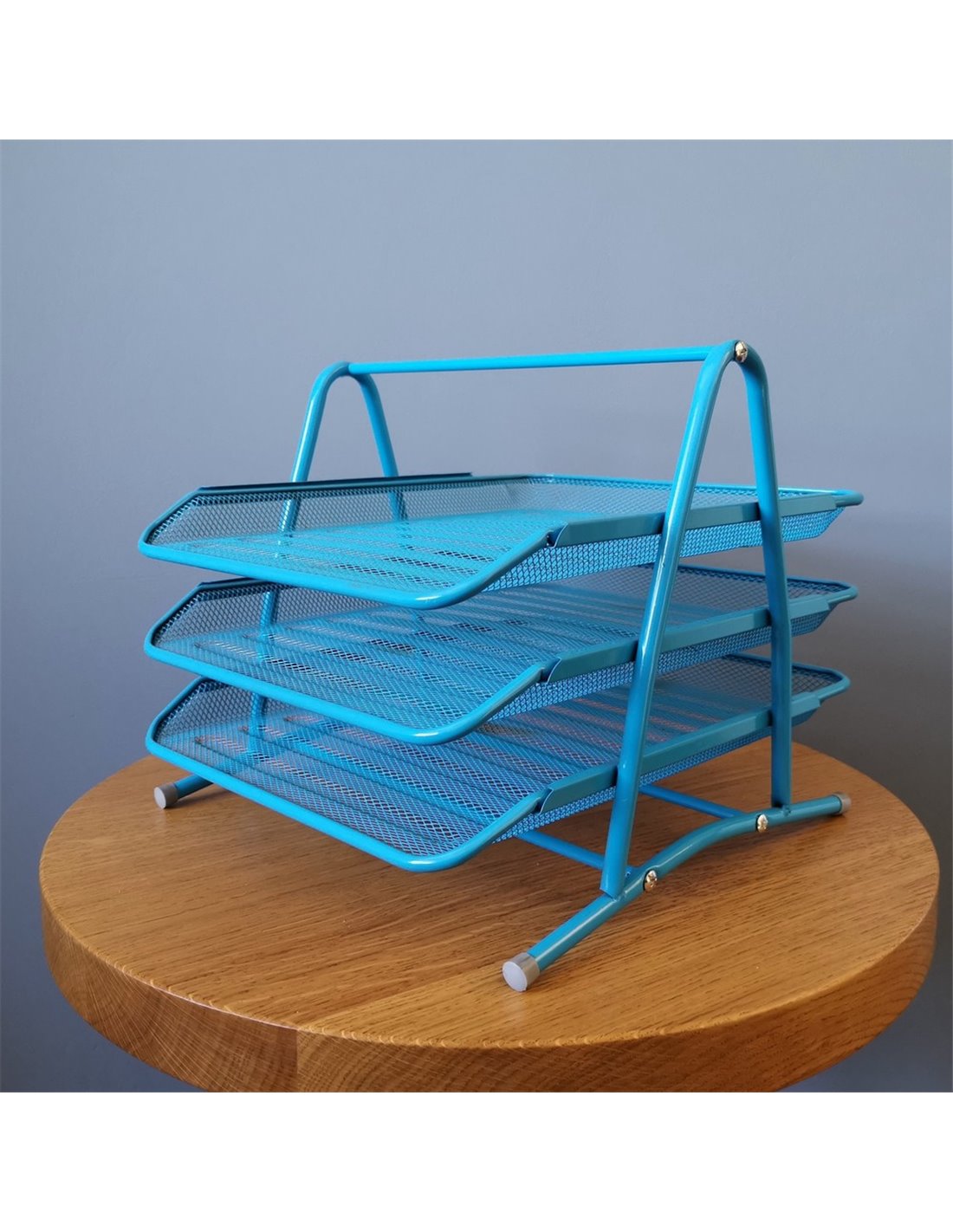 Alege suportul Leviatan turcoaz cu 3 tăvițe pentru un birou organizat, modern și plin de culoare!