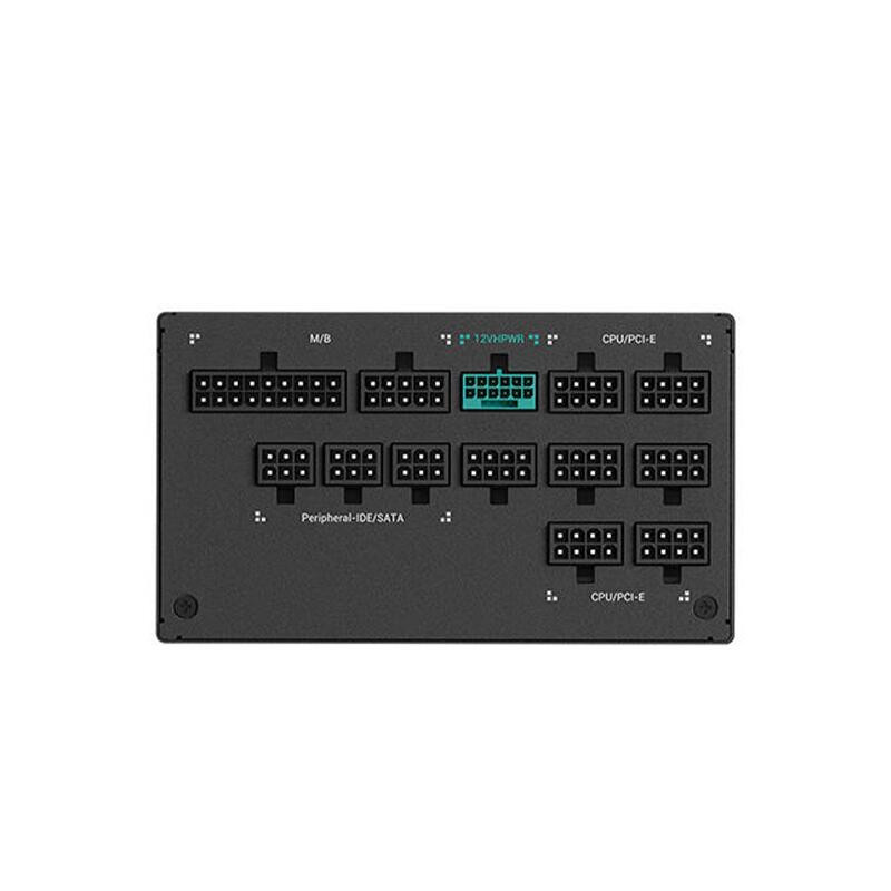 Sursa full modulara Deepcool PX1300P 1300W neagra, certificata 80 PLUS Platinum, Cybenetics_Platinum, eficienta 92%, ATX 3.0, PCI-E 5.0, single rail (108.3A), ventilator silentios de 120mm cu control termic automat, 1x 24pin (600mm), 1x 16pin PCIE, 1x PCI-E8Pin x 2 to 12VHPWR(16Pin), 5x 6+2pin PCIE, 8x SATA, 4x Molex, 2x 4+4pin EPS12V (700mm), OPP/OVP/SCP/OTP/OCP/UVP/NLO/SIP, Active PFC, dimensiuni (WxLxH): 150x160x86mm