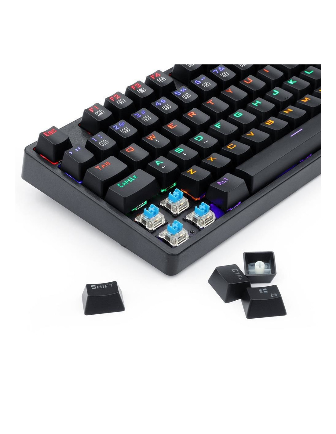Tastatura gaming mecanica Redragon Daksa neagra iluminare rainbow, toate tastele fara conflict - 87 taste (n-key rollover), iluminare LED rainbow a tastelor (9 moduri de iluminare, reglarea intensitatii), 12 taste multimedia, tasta WIN poate fi dezactivata in timpul jocurilor, conector USB placat cu aur, USB