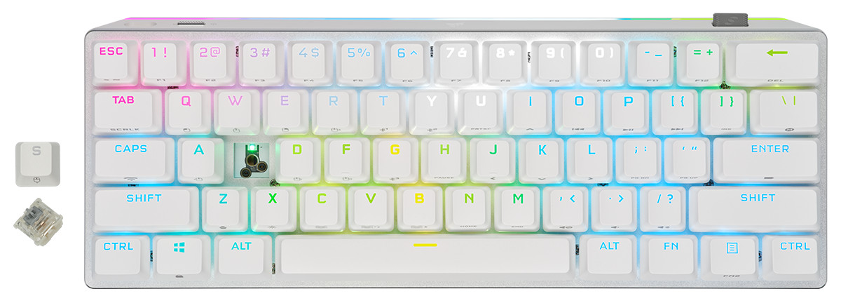 K70 PRO MINI WIRELESS 60% Mechanical CHERRY MX Red Switch Keyboard with RGB Backlighting - White "CH-9189110-NA",