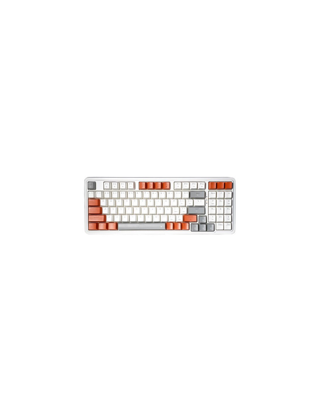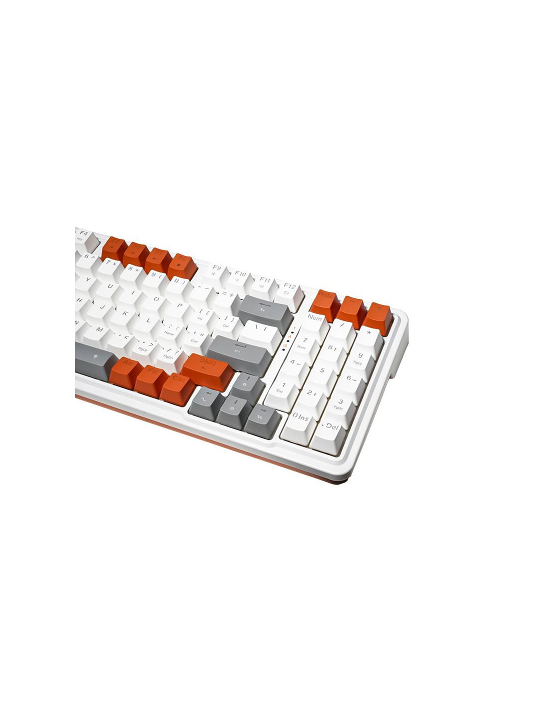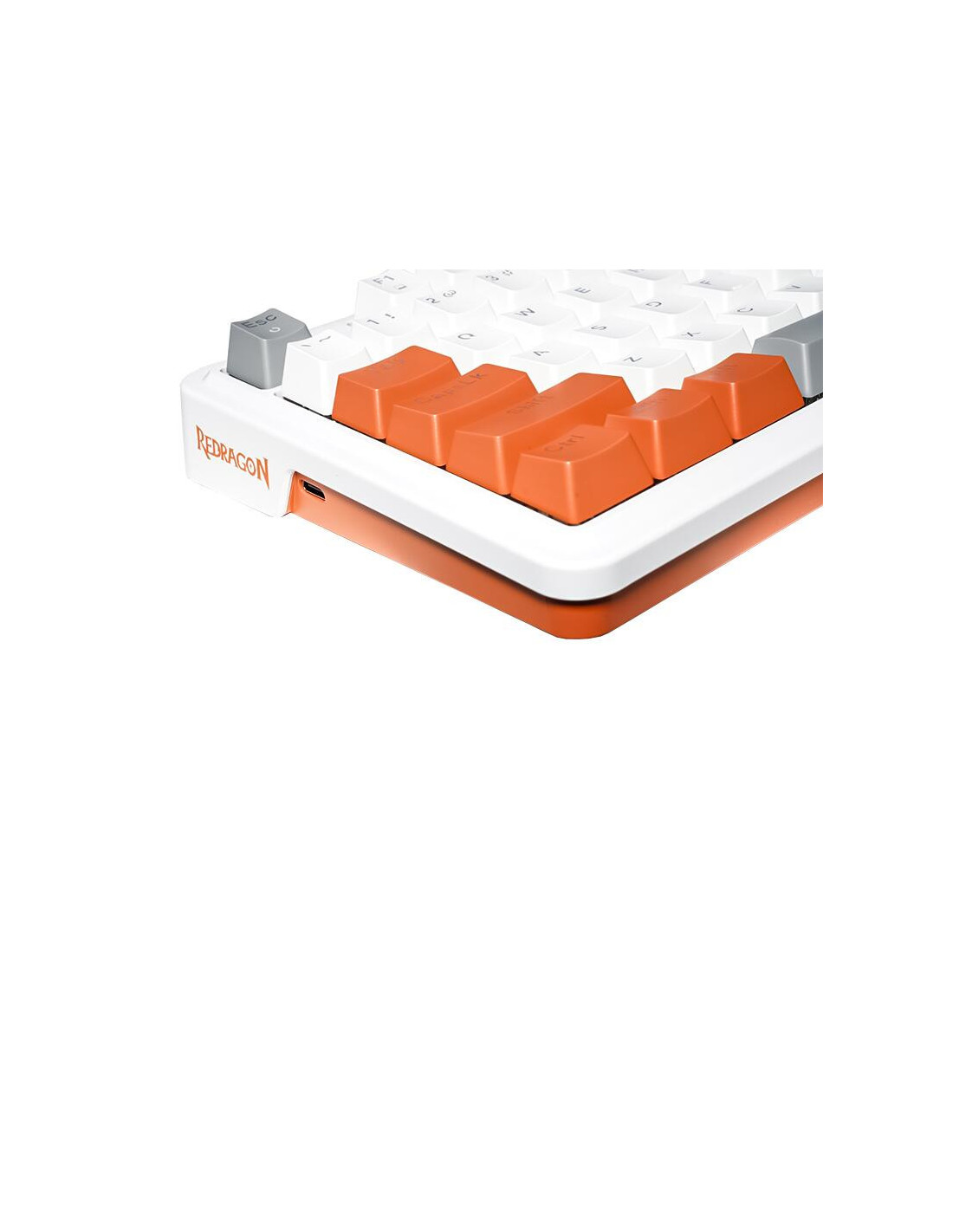 Tastatura gaming mecanica Redragon Gloria alba iluminare RGB switch-uri rosii, sasiu din plastic alb, switch-uri Redragon rosii, keycaps-uri albe, portocalii si gri, toate tastele fara conflict - 94 taste (n-key rollover), doua straturi de spuma insonorizanta Eva de 3.5mm, iluminare LED RGB a tastelor (16 moduri de iluminare, reglarea intensitatii), tasta WIN poate fi dezactivata in timpul jocurilor, 8 taste multimedia, include switch-uri de schimb, compatibila cu majoritatea switch-urilor, conector USB Type-C, cablu USB detasabil, dimensiuni: 374x140x37mm, greutate: 916g