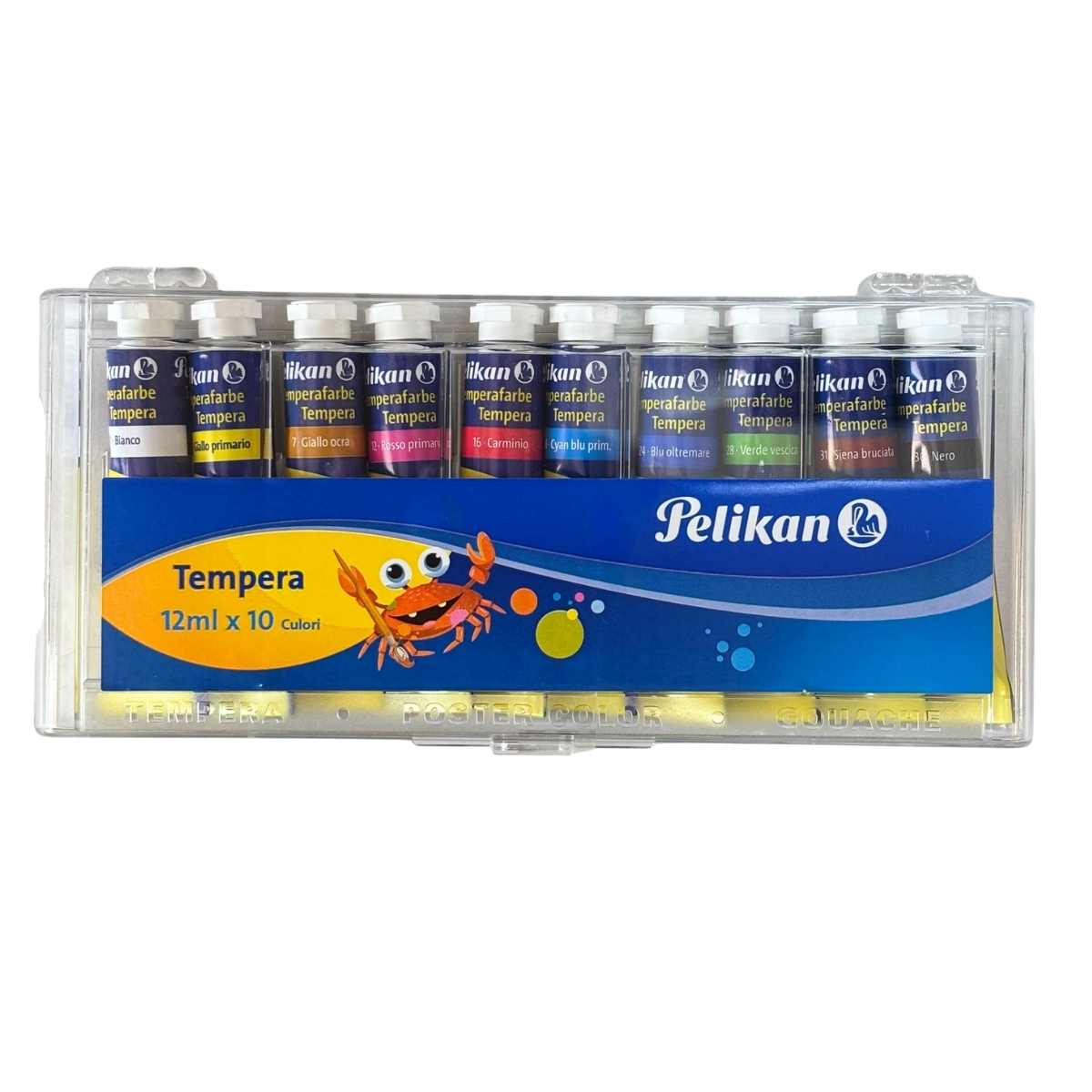 Setul de acuarele tempera Pelikan, 10 culori de 12 ml, oferă performanță profesională și libertate creativă. Cu culori opace, mixabile și rezistente, este perfect pentru școală, artă și activități de relaxare, aducând inspirație și bucurie în fiecare lucrare.