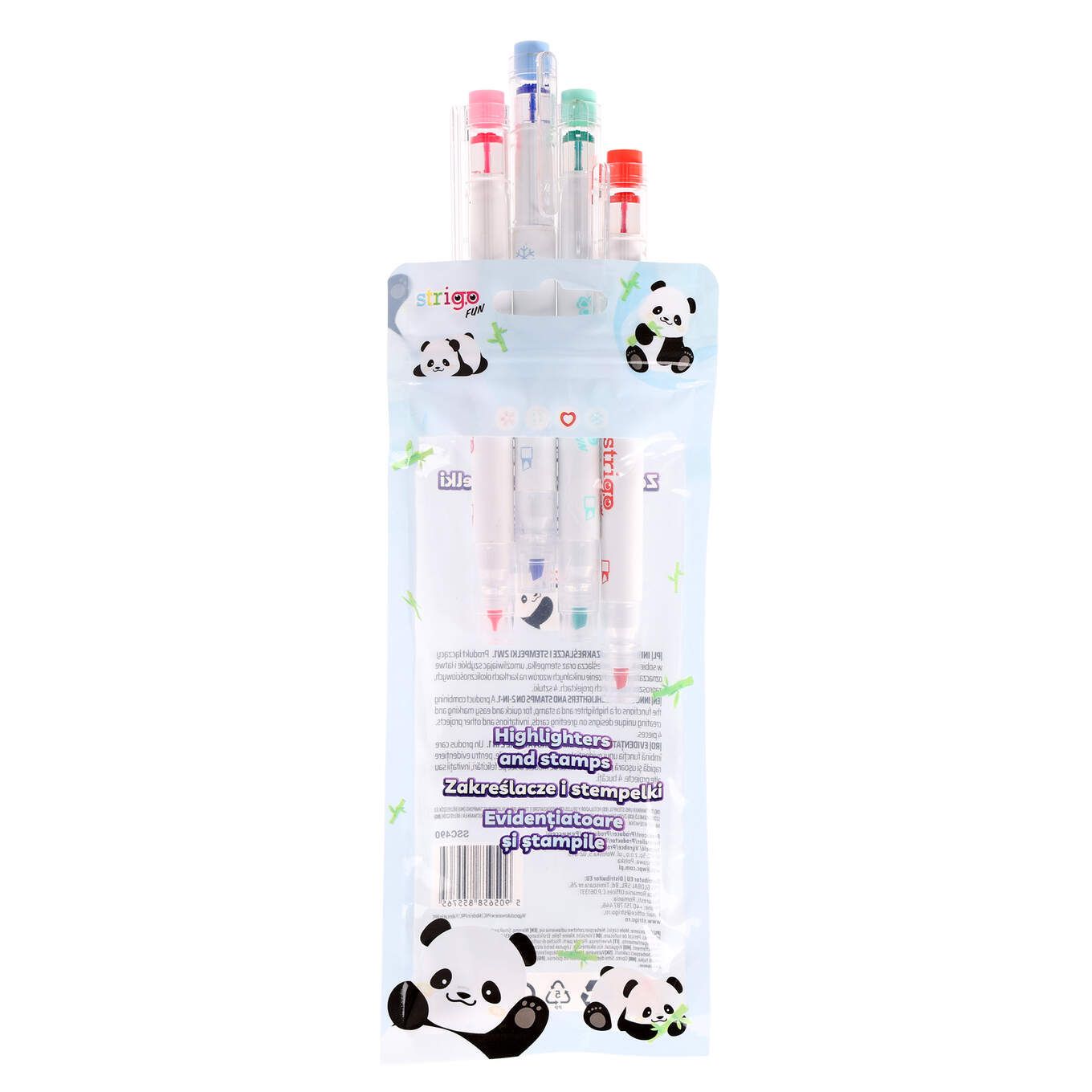 Set 4 evidentiatoare 2 in 1 cu stampila Strigo SSC490, Motiv panda