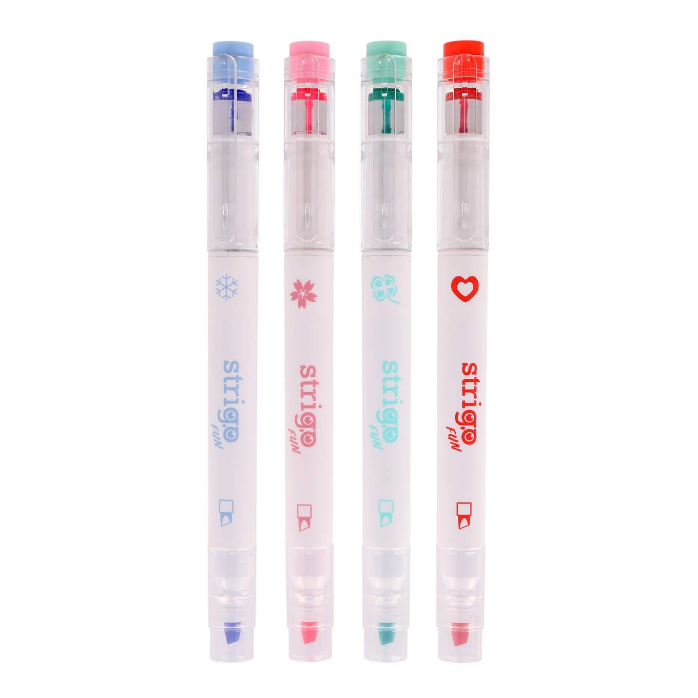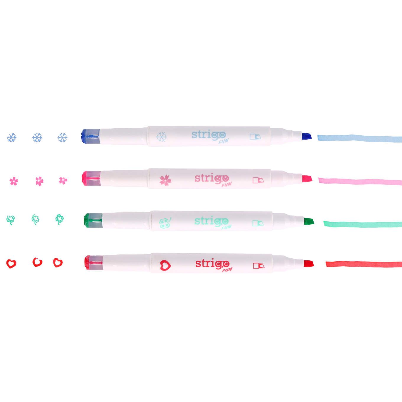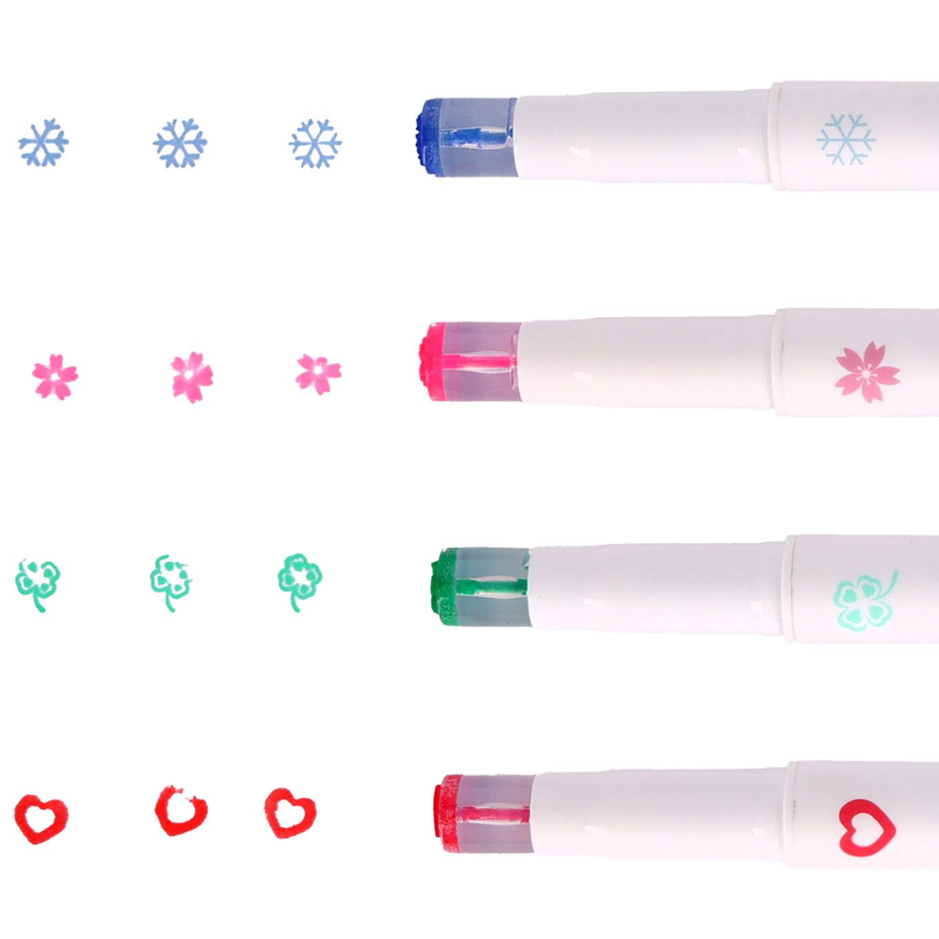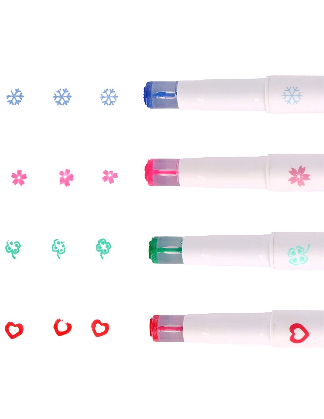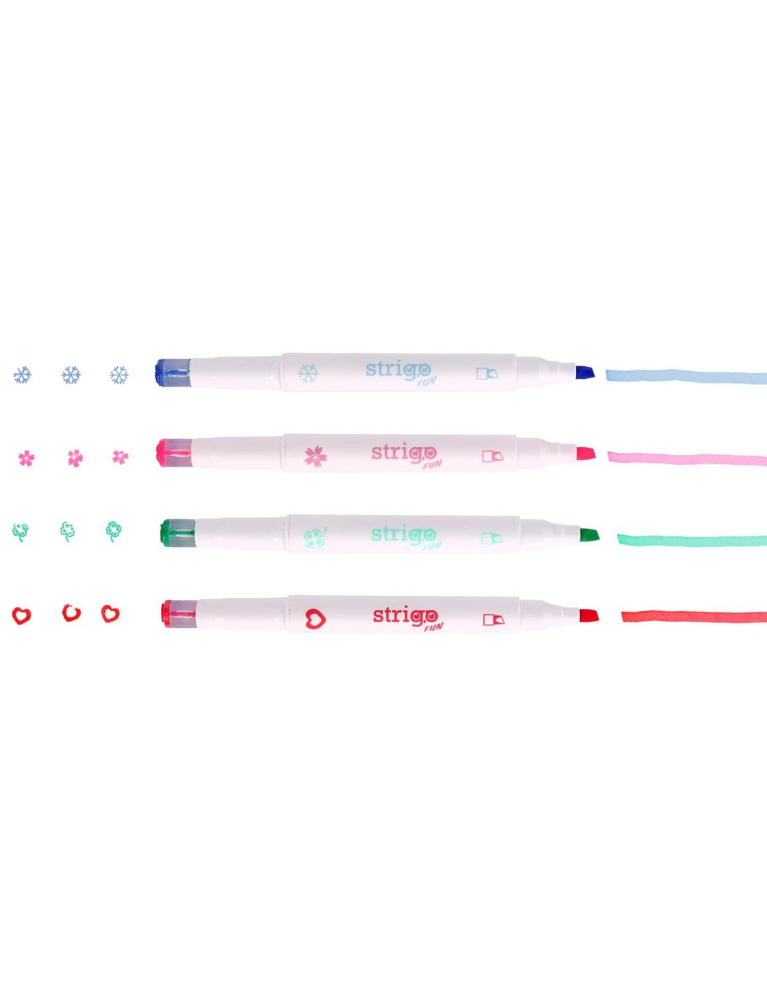 - Set de 4 evidențiatoare 2 în 1 cu ștampilă decorativă