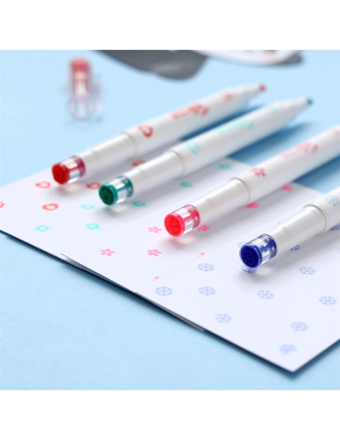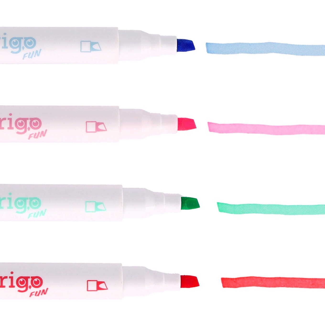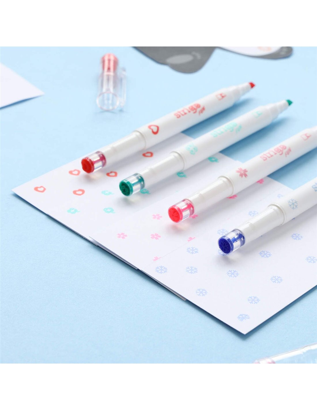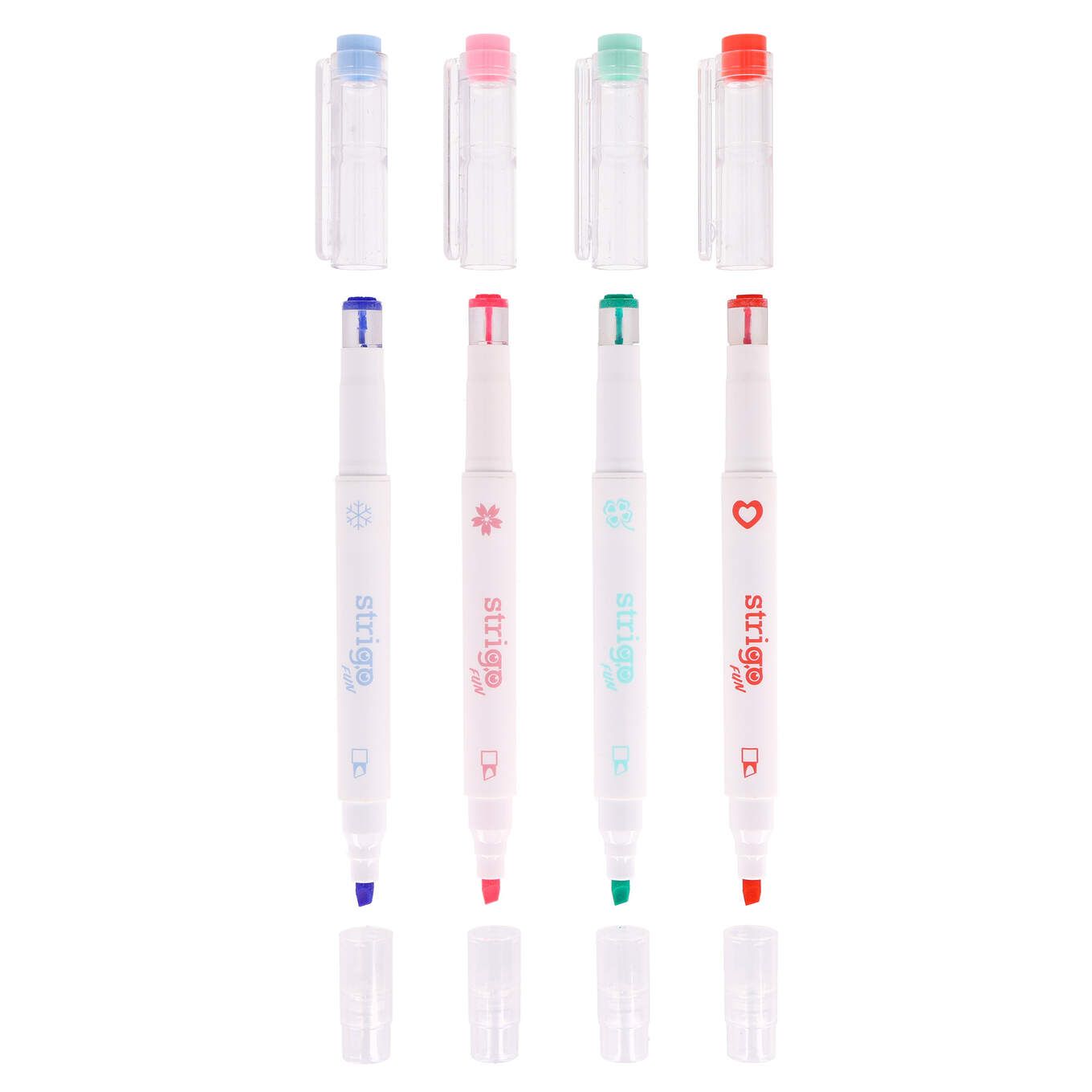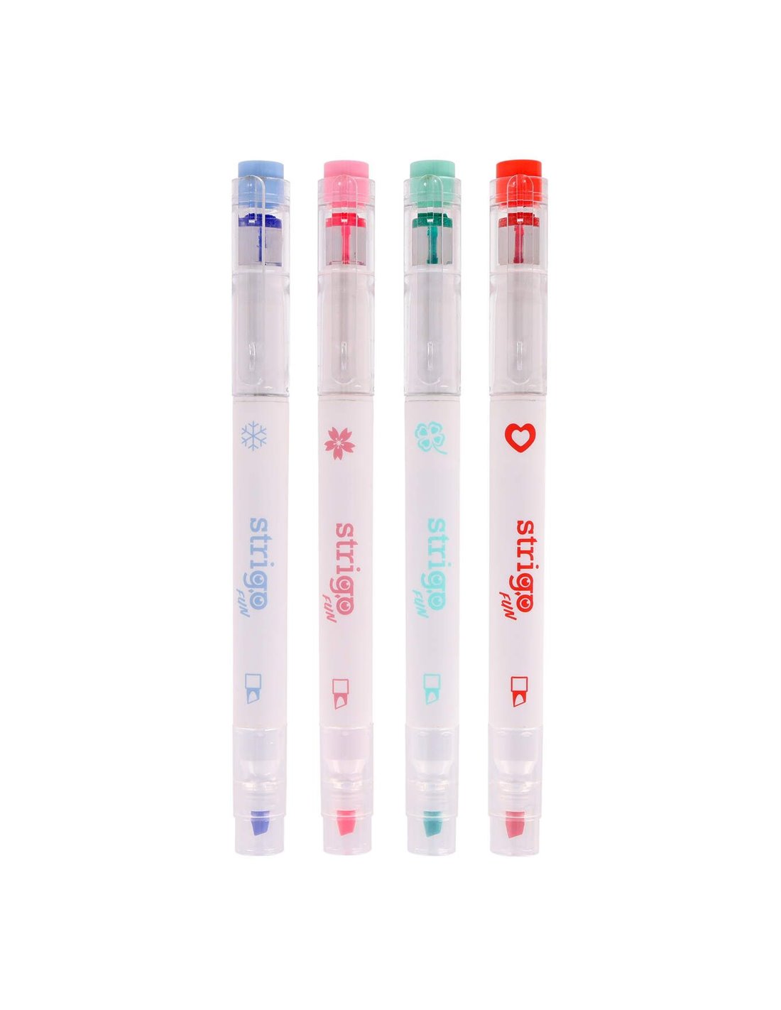 - Set de 4 evidențiatoare 2 în 1 cu ștampilă decorativă