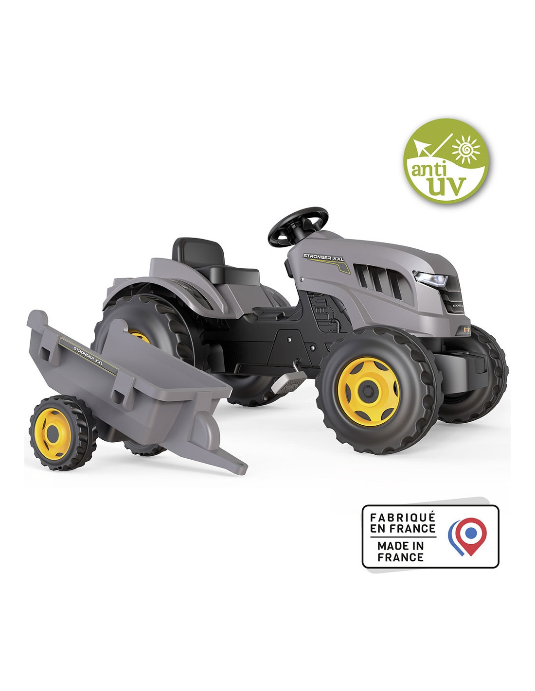 Tractor cu pedale si remorca Smoby Stronger XXL, Gri