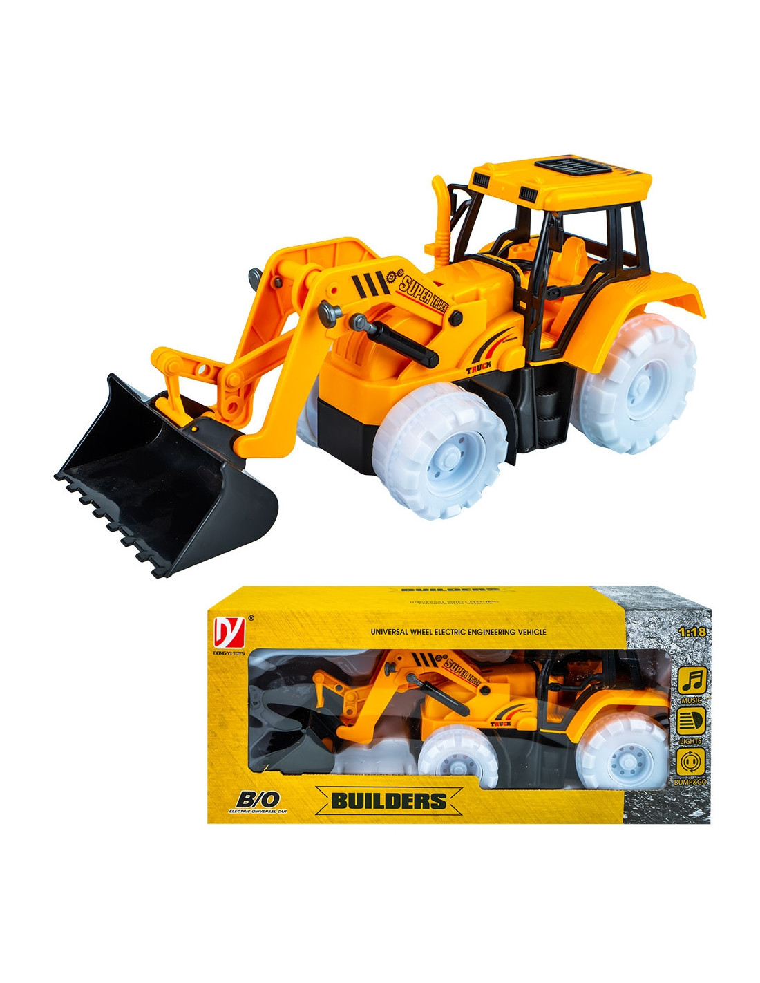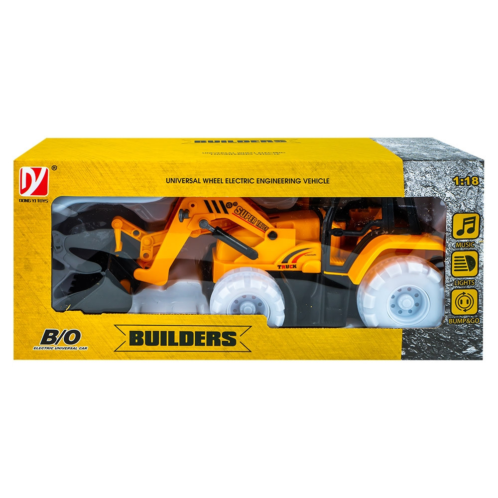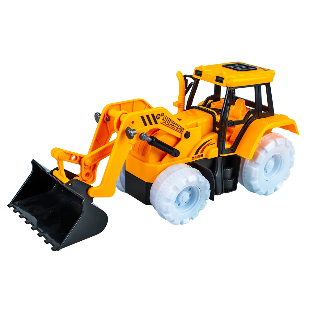 - Tractorul-incarcator cu baterii este o jucarie realizata din plastic in culori specifice, ideala pentru copiii pasionati de utilaje si vehicule de constructii. Realizat la scara 1:18, acest tractor se remarca prin designul realist si functiile captivante, transformand joaca intr-o experienta dinamica si educativa.