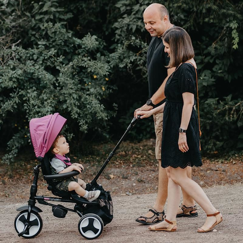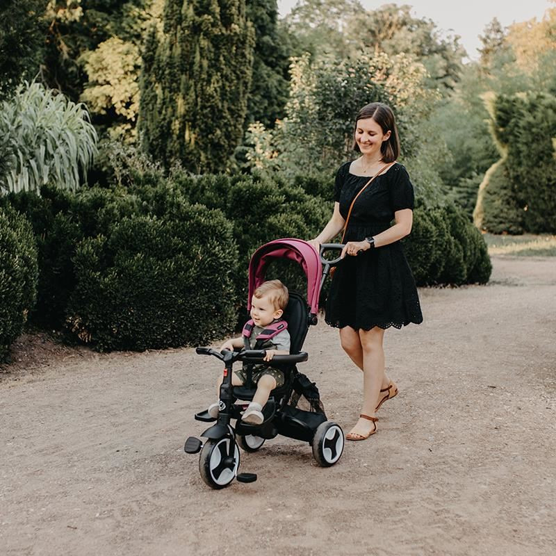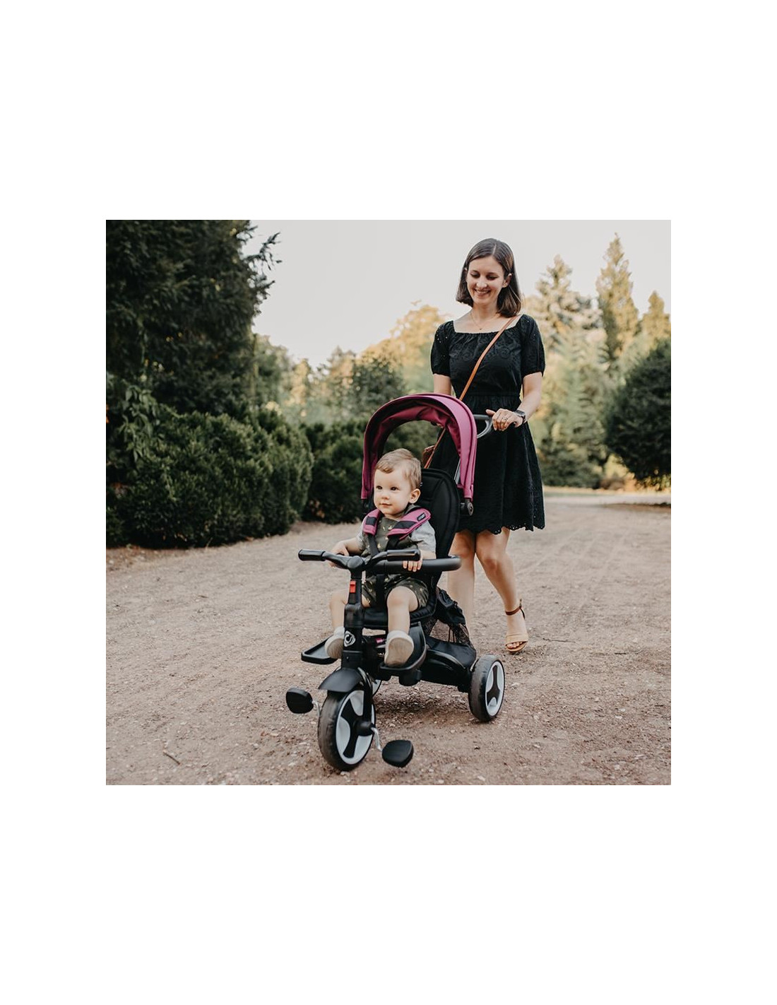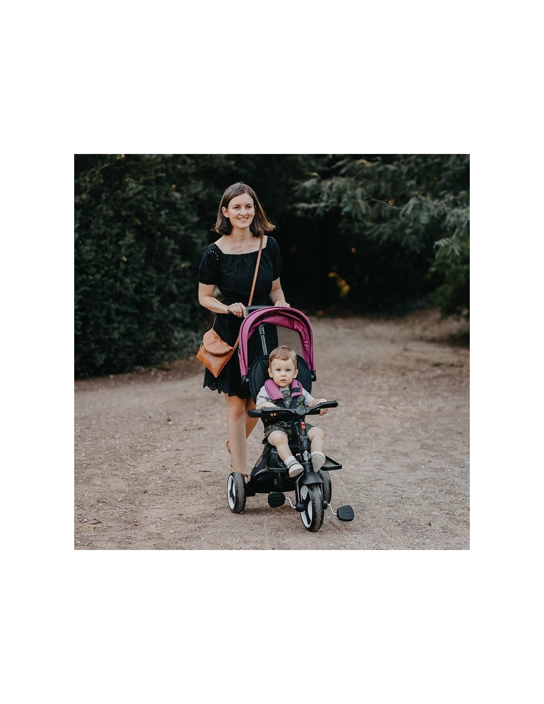 Pentru a spori confortul copilasilor, dar a si prelungi timpul petrecut afara, tricicleta este conceputa pentru a oferi o pozitie comoda de somn atat pentru utilizarea cu fata la sensul de mers, cat si cu spatele intrucat ghidonul se pliaza si confera inca un grad de inclinare spatarului. Dotata cu centura de siguranta in 5 puncte, produsul ofera siguranta necesara in oricare stadiu al utilizarii acestuia.