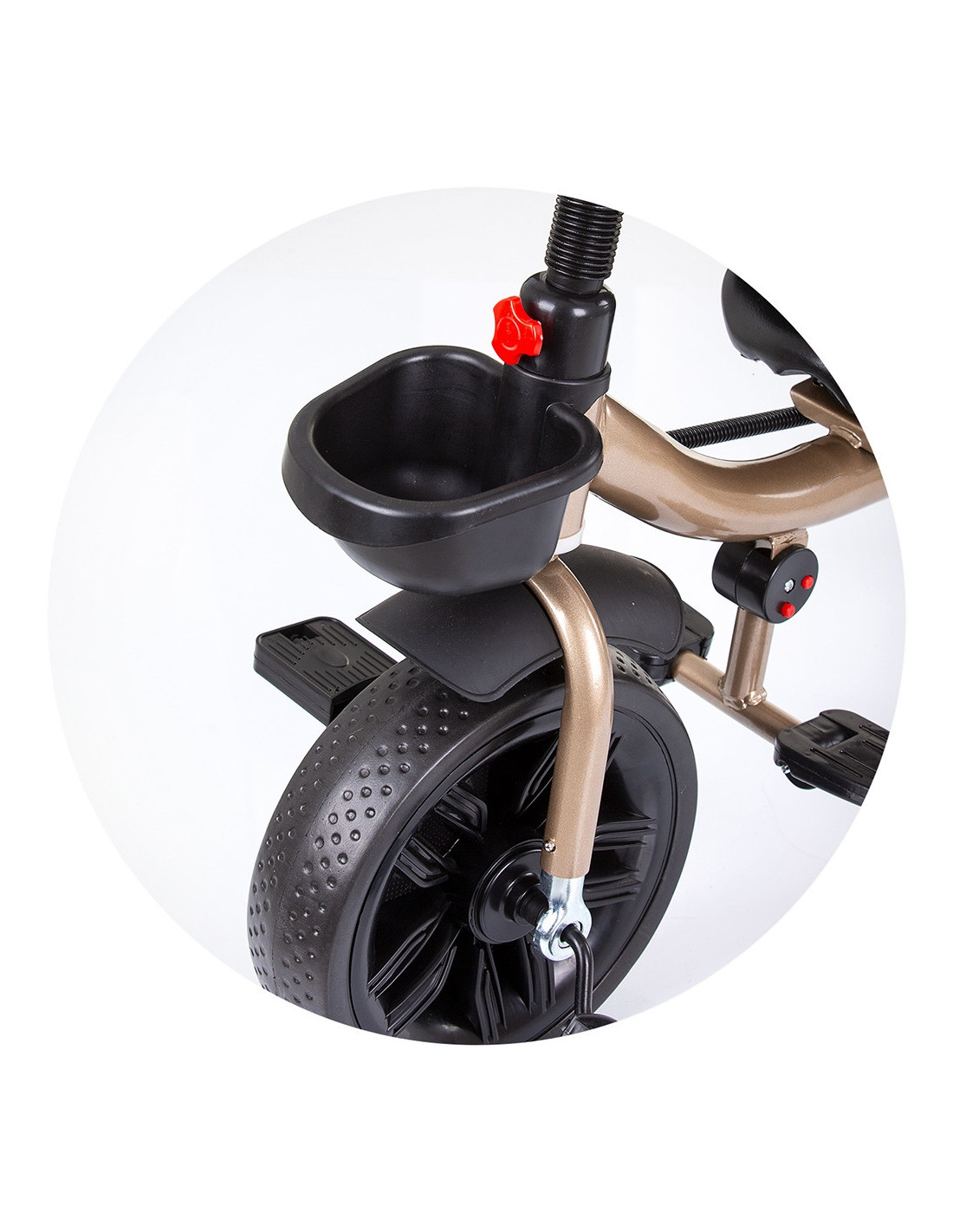 - Poate fi pusa in miscare de catre copil cu ajutorul pedalelor sau poate fi impins de catre parinte