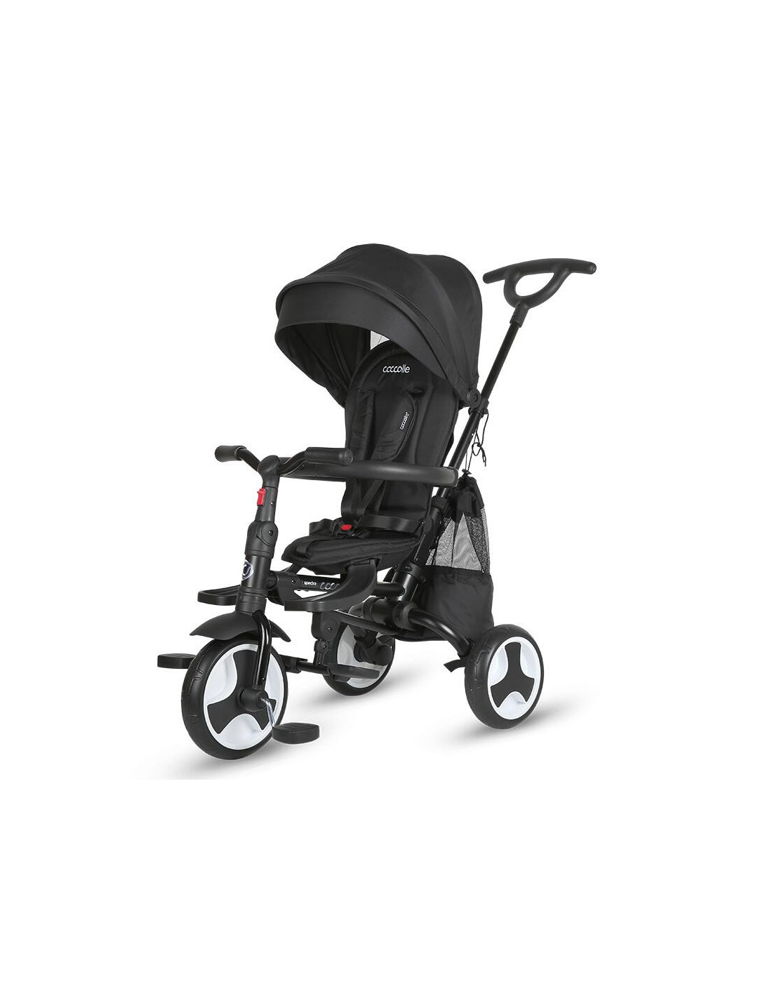 - Elemente detasabile (copertina, inel de protectie, suport de piciare) pentru a rezulta o tricicleta clasica utilizabila de catre copiii mai mari