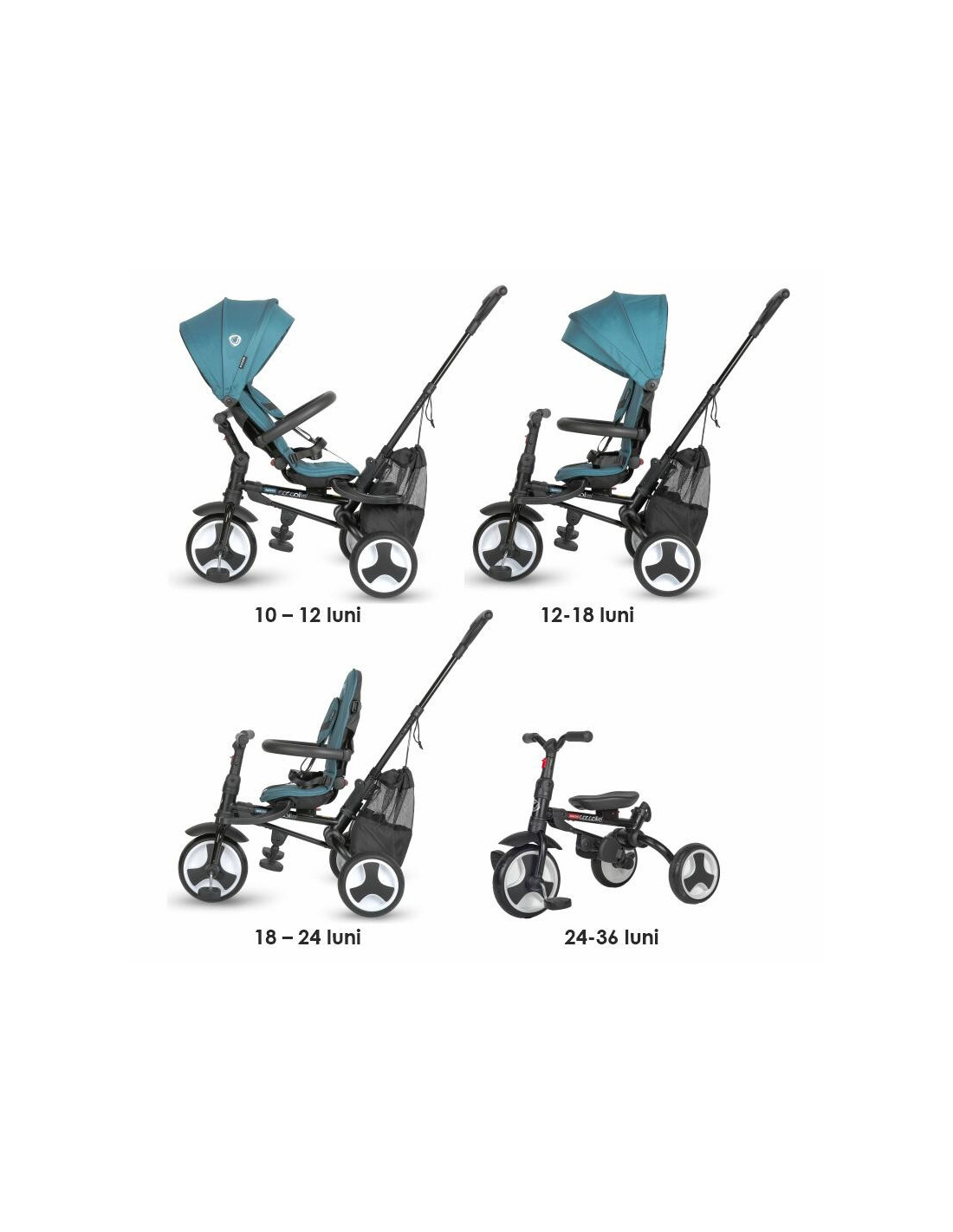 - Multifunctionala: se poate folosi de la 10 luni la 3 ani - cu toate accesoriile incluse; iar in modul tricicleta clasica, se poate folosi chiar si pana la 5 ani in functie de constitutia copilului