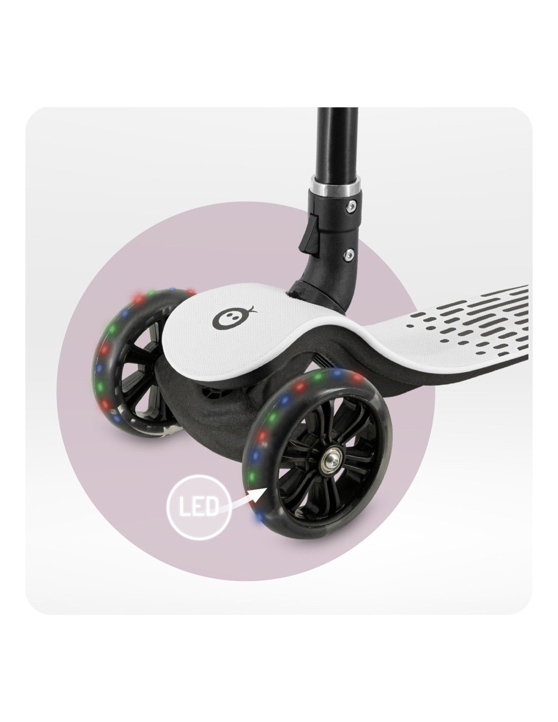 Rotile din poliuretan rezistent la abraziune ofera o deplasare lina si stabila, iar efectul luminos LED le face pe placul copiilor si asigura vizibilitate sporita.