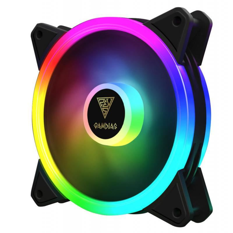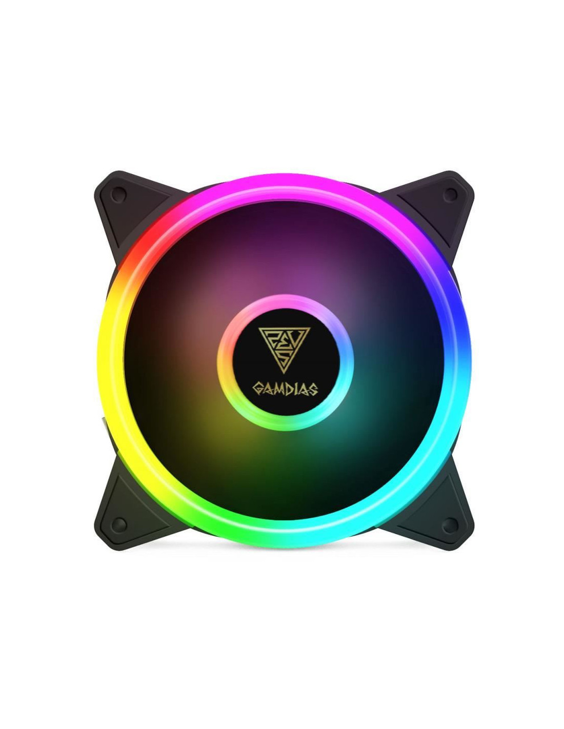 AEOLUS-M2-1204R Set 4 ventilatoare Gamdias Aeolus M2 1204R 120mm iluminare RGB, iluminare Ring LED adressable RGB pe ambele fete ale ventilatorului si in centrul palelor cu 55 de moduri de iluminare, tip rulmet: Hydraulic Bearing, 500-1500 RPM±10%, 66 CFM, 17 - 23 dBA, 1.94 mmH2O, cablu plat, include telecomanda si hub (suporta pana la 8 ventilatoare si 2 benzi LED), compatibil iesirile de LED adresabil Asus AURA / Gigabyte RGB Fusion / MSI Mystic Light Sync, dimensiuni: 120x120x25mm