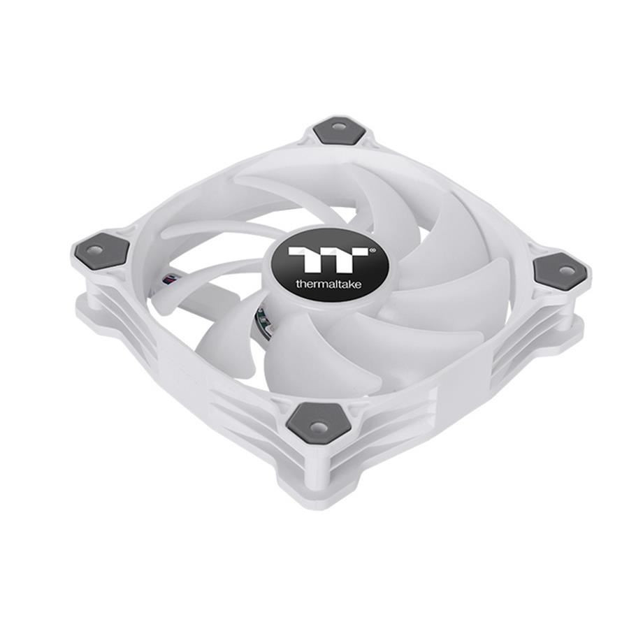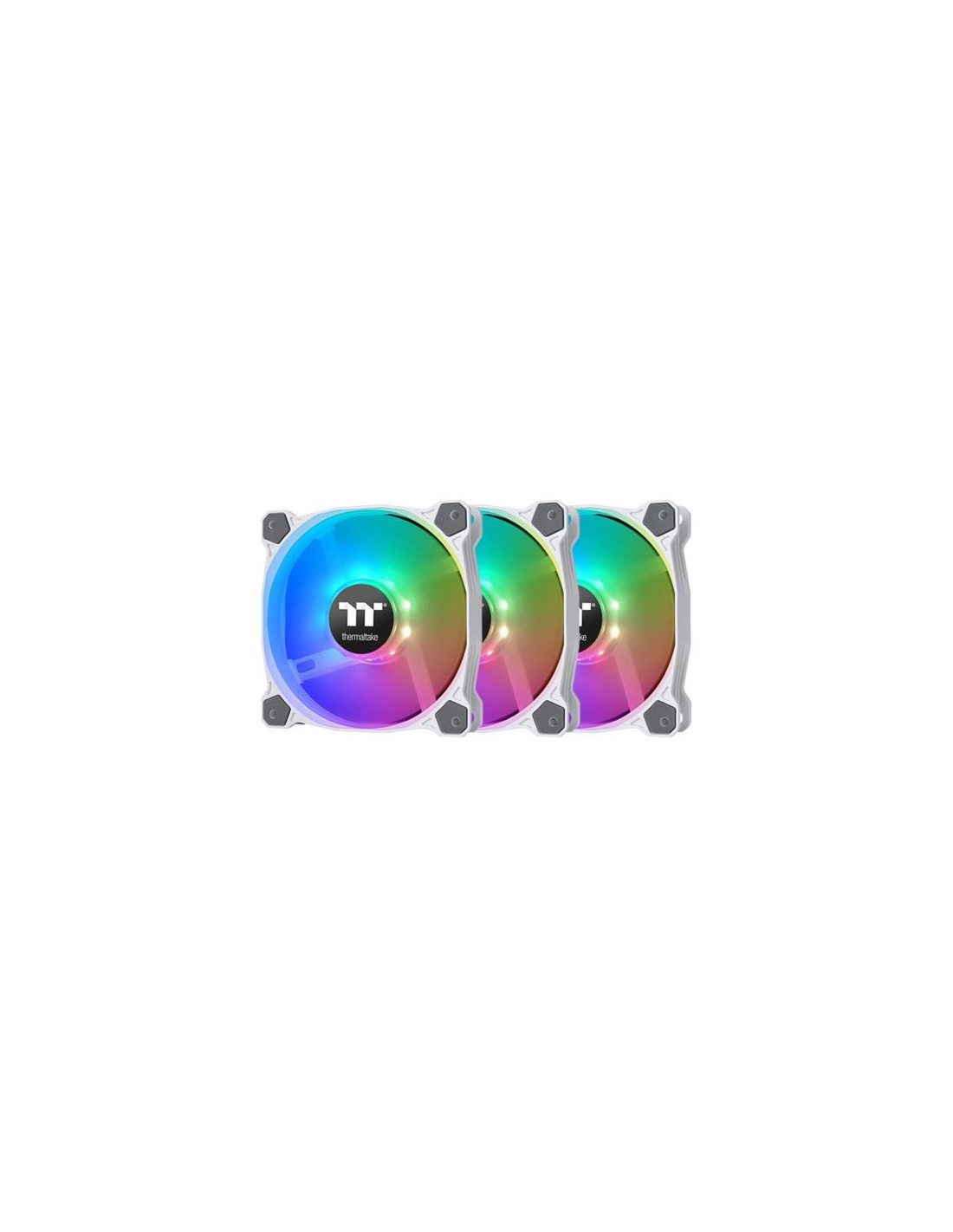 Set 3 ventilatoare Thermaltake Pure 12 ARGB 120mm albe iluminare adresabila RGB, 500-1500 RPM, 56.45 CFM, 25.8 dBA, 1.59 mm-H2O, Hydraulic Bearing, conector: Fan 2510-4P , LED 5V RGB Header, include fan controller pentru culoarea si modul de iluminare, compatibil ASUS Aura Sync / GIGABYTE RGB Fusion / MSI Mystic Light Sync / AsRock Polychrome , dimensiuni ventilator: 120 x 120 x 25 mm, greutate: 171 g