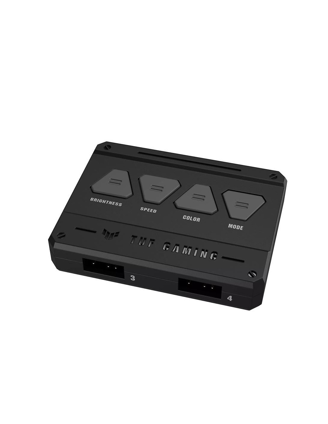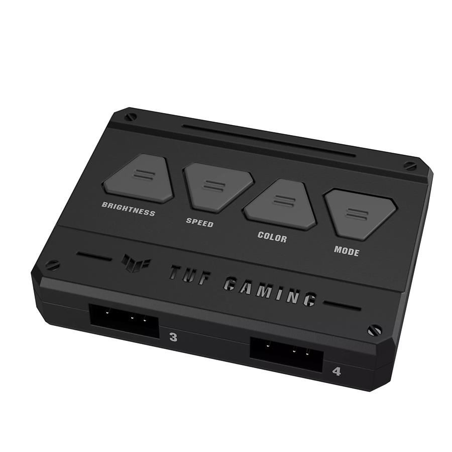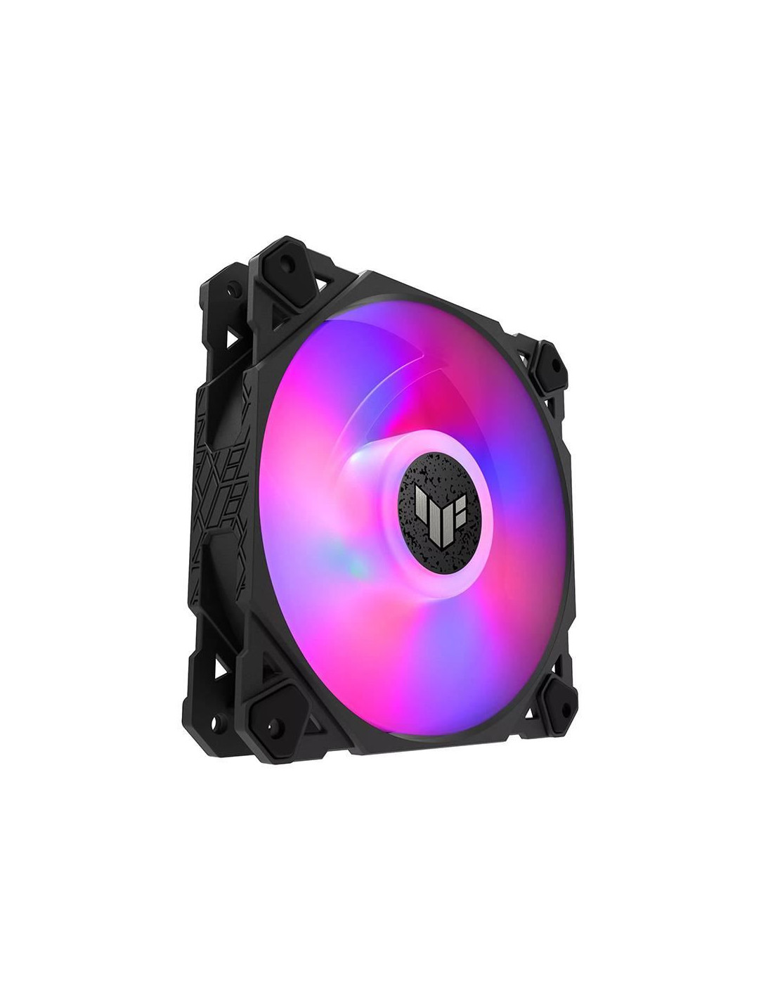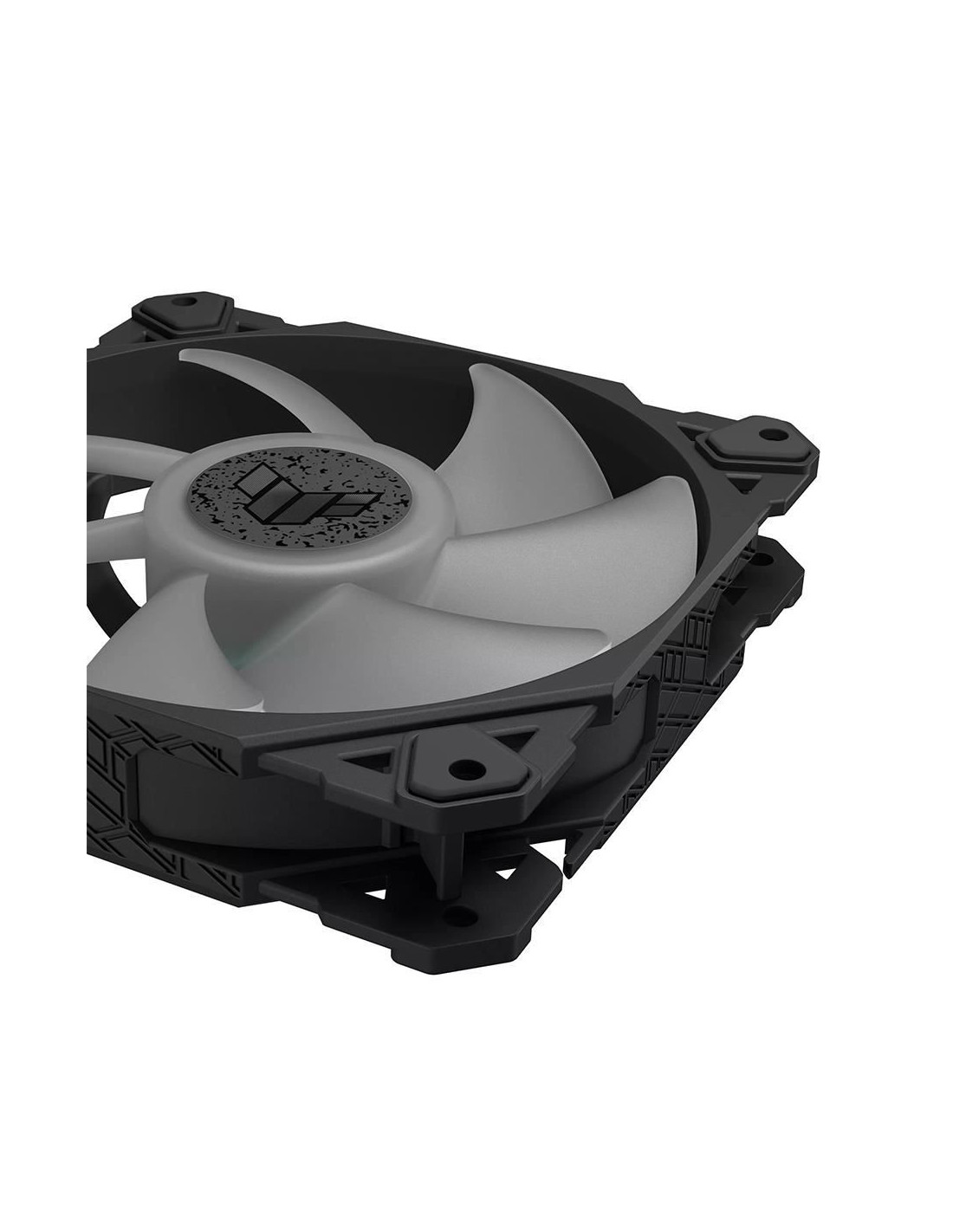 Set 3 ventilatoare ASUS TUF Gaming TF120 120mm iluminare aRGB, rulmenti Advanced FDB, 250-1900±10%RPM, 76CFM, 29dB(A), 2.5 mm H2O, inlcude controller aRGB la cere se pot conecta maxim 4 ventilatoare, iluminare aRGB cu 16 LED-uri compatibila ASUS Aura Sync, rezistent la praf si apa, conectori: PWM si aRGB, dimensiuni: 120X120X25mm
