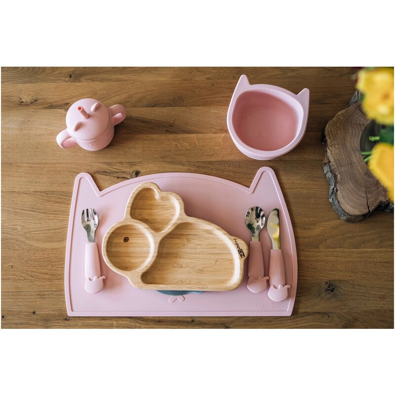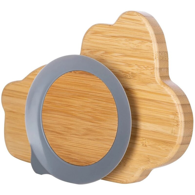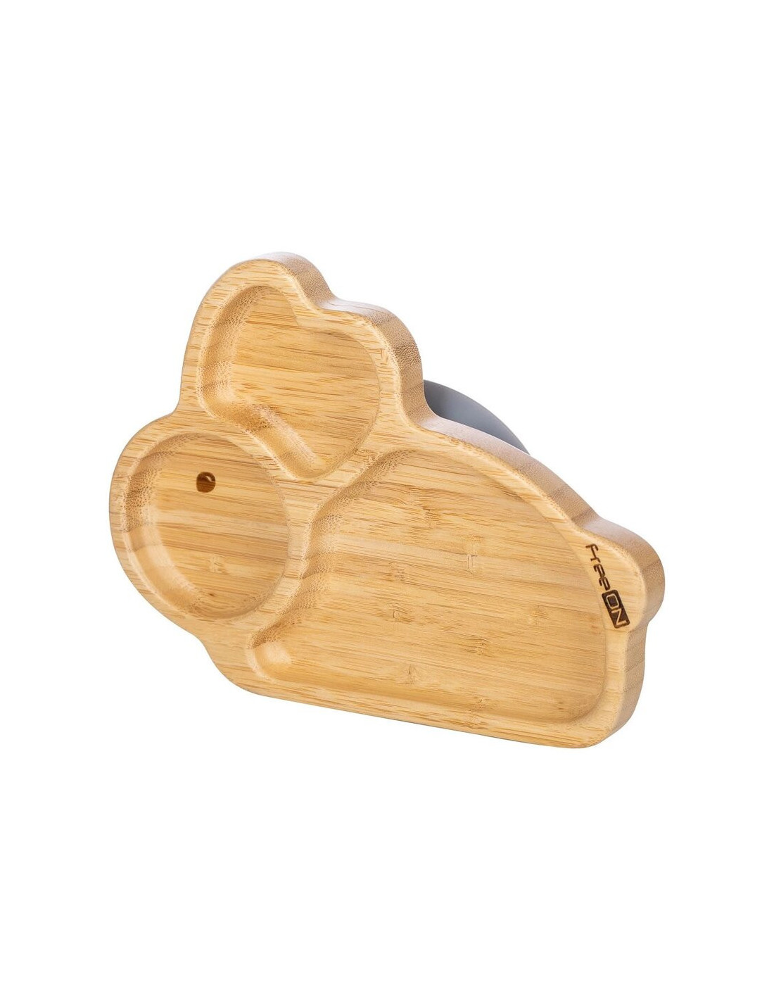Farfurie compartimentata din bambus, Cu ventuza, Conform cu standardul european de securitate EN 14372:2004, FreeON, Bunny