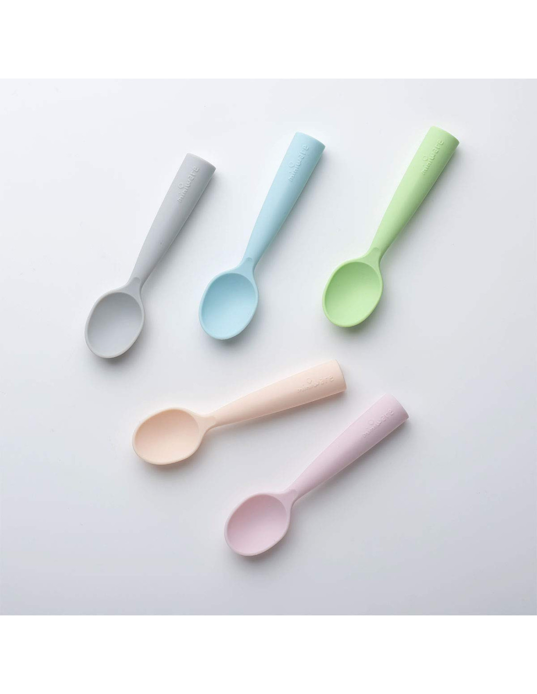 Set de lingurite bebelusi Miniware, 100% silicon alimentar, Grey+Cotton candy
